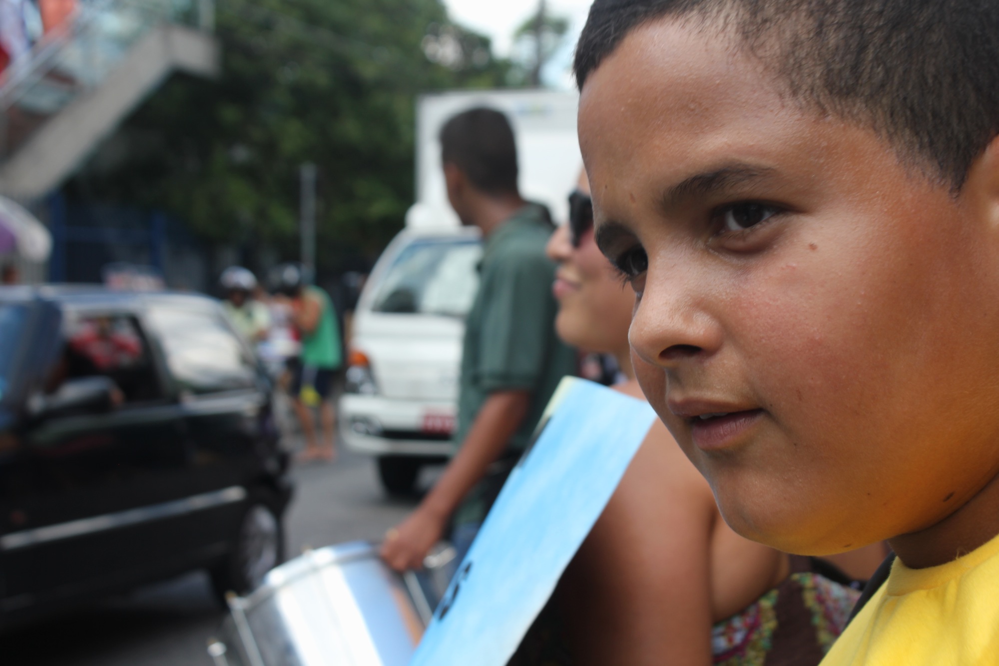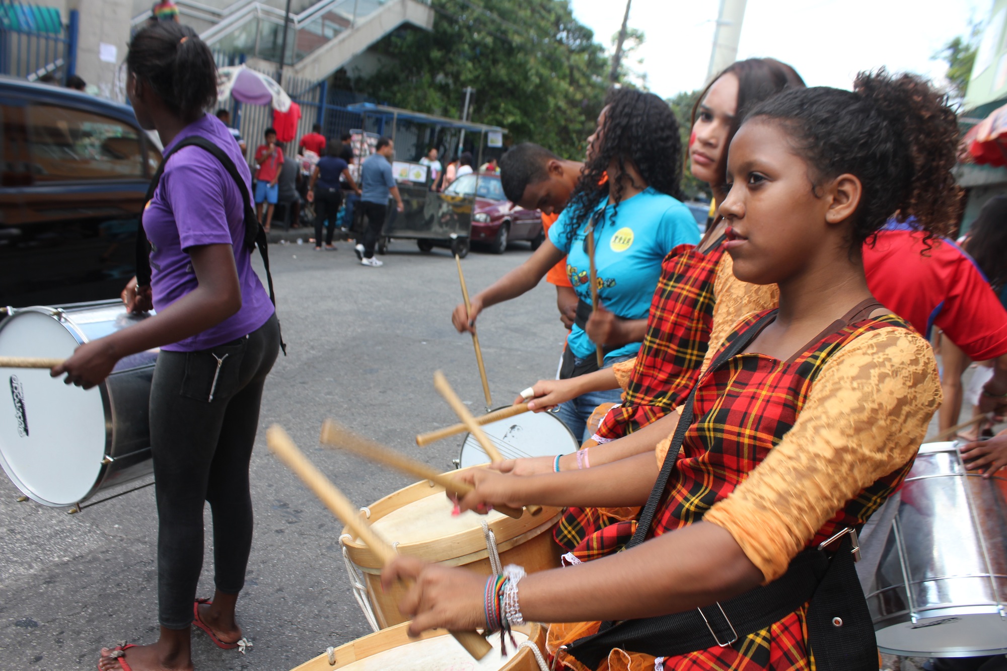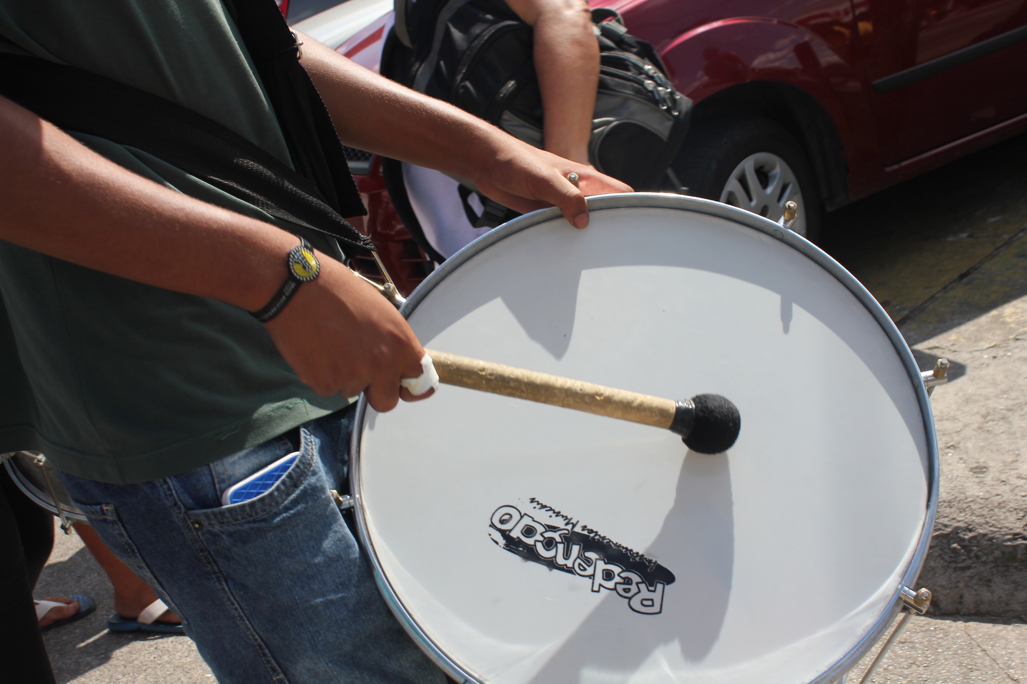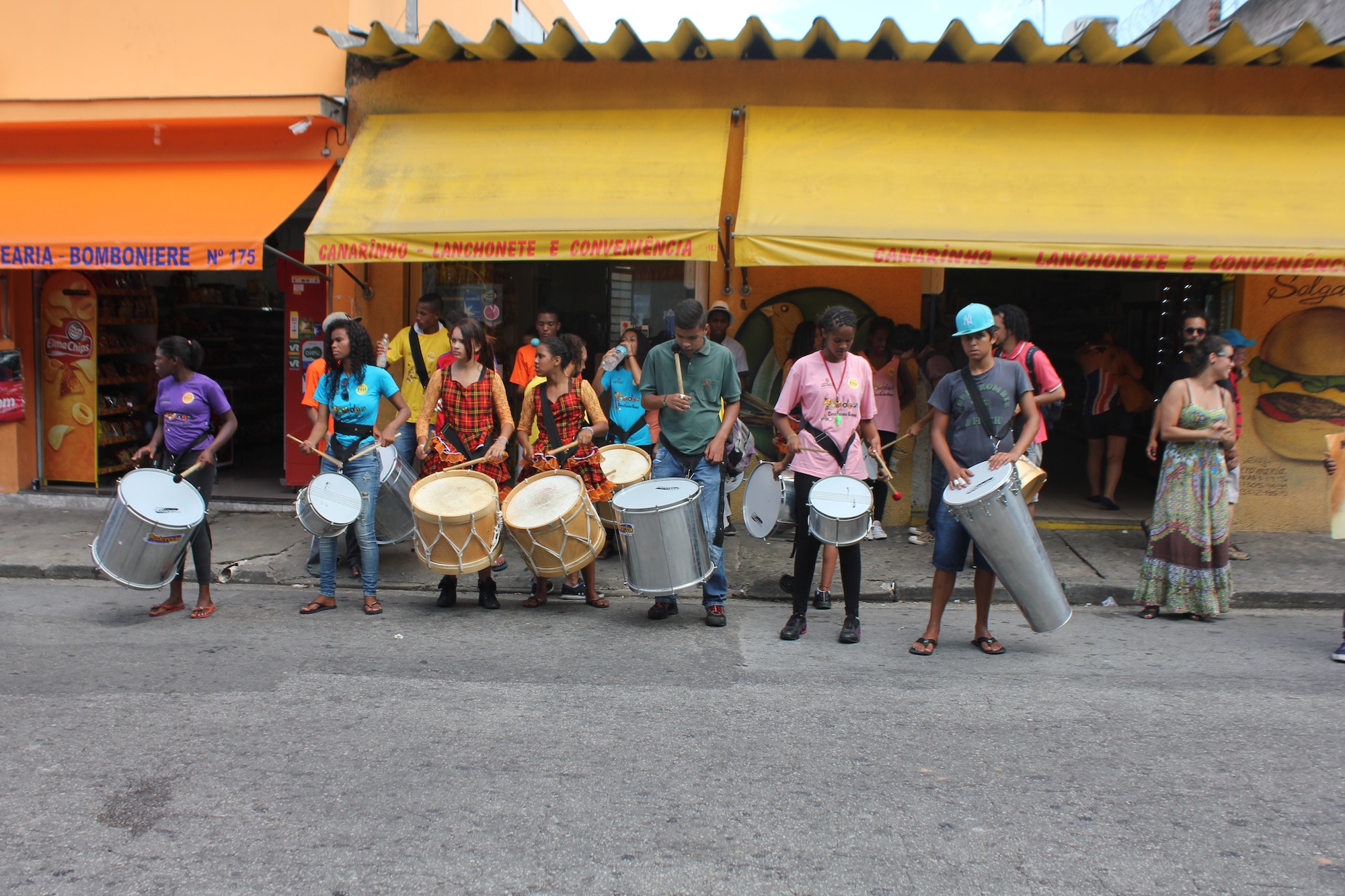 Mais de 30 adolescentes que moram no Extremo Sul de São Paulo realizaram, na tarde desta terça-feira (15/12), um cortejo pela avenida Belmira Marin, no Grajaú. Com panfletagem, cartazes e batucada, eles protestavam pelo cancelamento da reorganização escolar. O cortejo terminou em frente ao Terminal Grajaú, onde o batuque continuou, além de acrobacias.