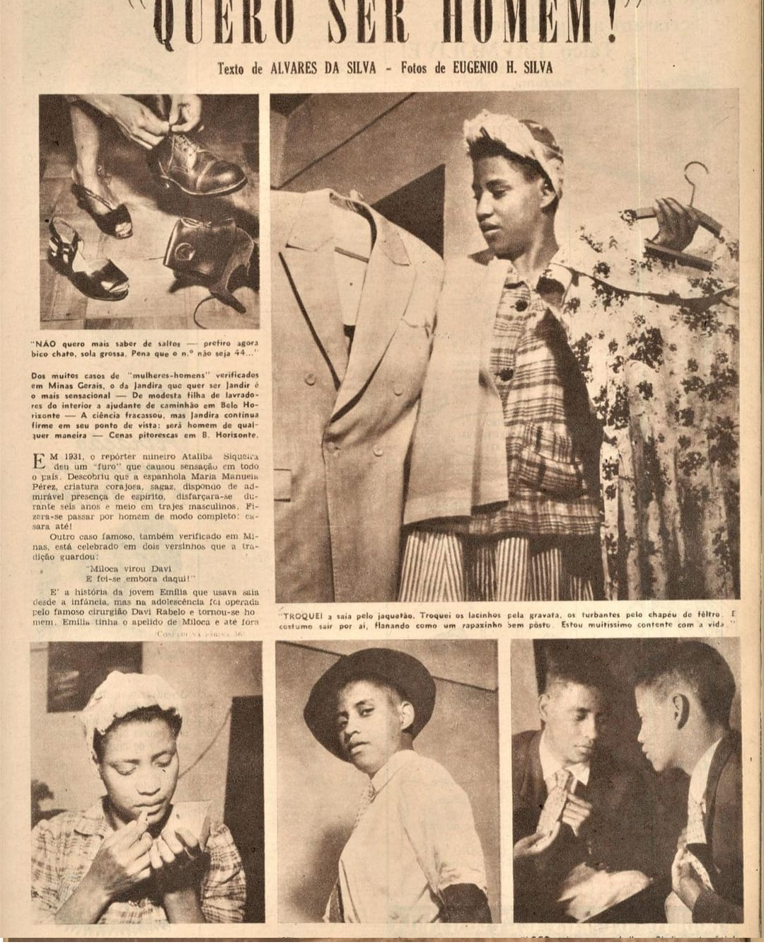 Por que jovens transmasculines no início de transição não conseguem ter acesso a referências como Jandir, um transmasculino negro que ganhou visibilidade em Belo Horizonte em outubro de 1949, que mesmo com a opressão generalizada da epoca não abria mão de se sentir e se portar como se identificava? Jandir chegou a ser preso e alvo de diversas matérias no jornal local por estar vestido com roupas ditas masculinas em locais públicos. Até abril de 1950, Jandir viveu em BH, saindo de cena a partir de então sem se saber o que lhe aconteceu.