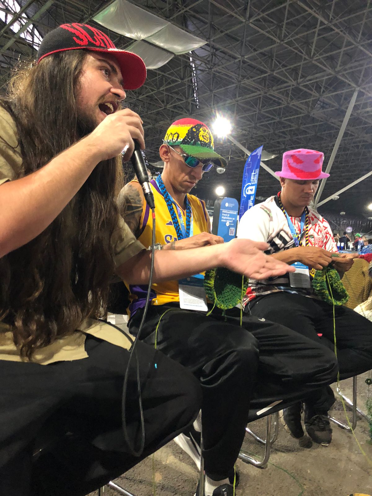 Também integrante do coletivo, o morador de Jundiaí (SP) começou no crochê em 2020, por conta do desemprego em meio à pandemia. Logo se estabeleceu como uma das referências na produção de chapéus e se aproximou de Diego, o Magro, e Vitor, o Vilão.