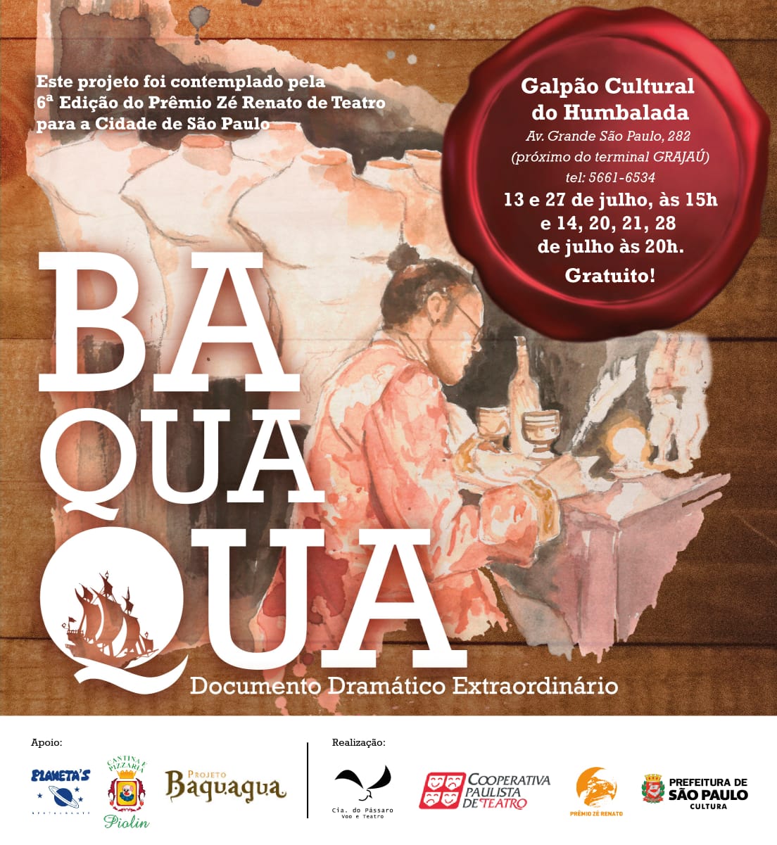 A peça estará em cartaz pelas próximas 3 semanas, a partir do dia 13, até dia 28. Nos dias 13 e 27, a peça se inicia ás 15h, e nos dias 14, 20,21 e 28, ás 20h. Ambos serão no Galpão Cultural Humbalada, que fica na Av. Grande São Paulo, 282, 5 minutos do Terminal Grajaú.