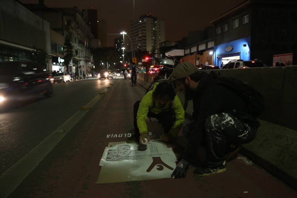 Na noite do dia 02 de junho, cerca de 25 km de ciclovias receberam mais de 400 sinalizações nas vias com ícones de carroças, fruto da ação coletiva #RECICLOVIA.