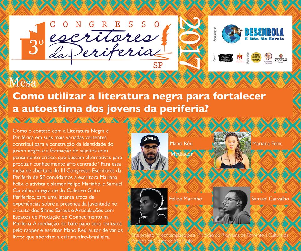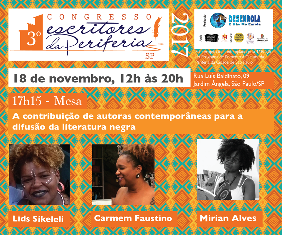 Veja mais informações na página do Congresso Escritores da Periferia SP e no evento.