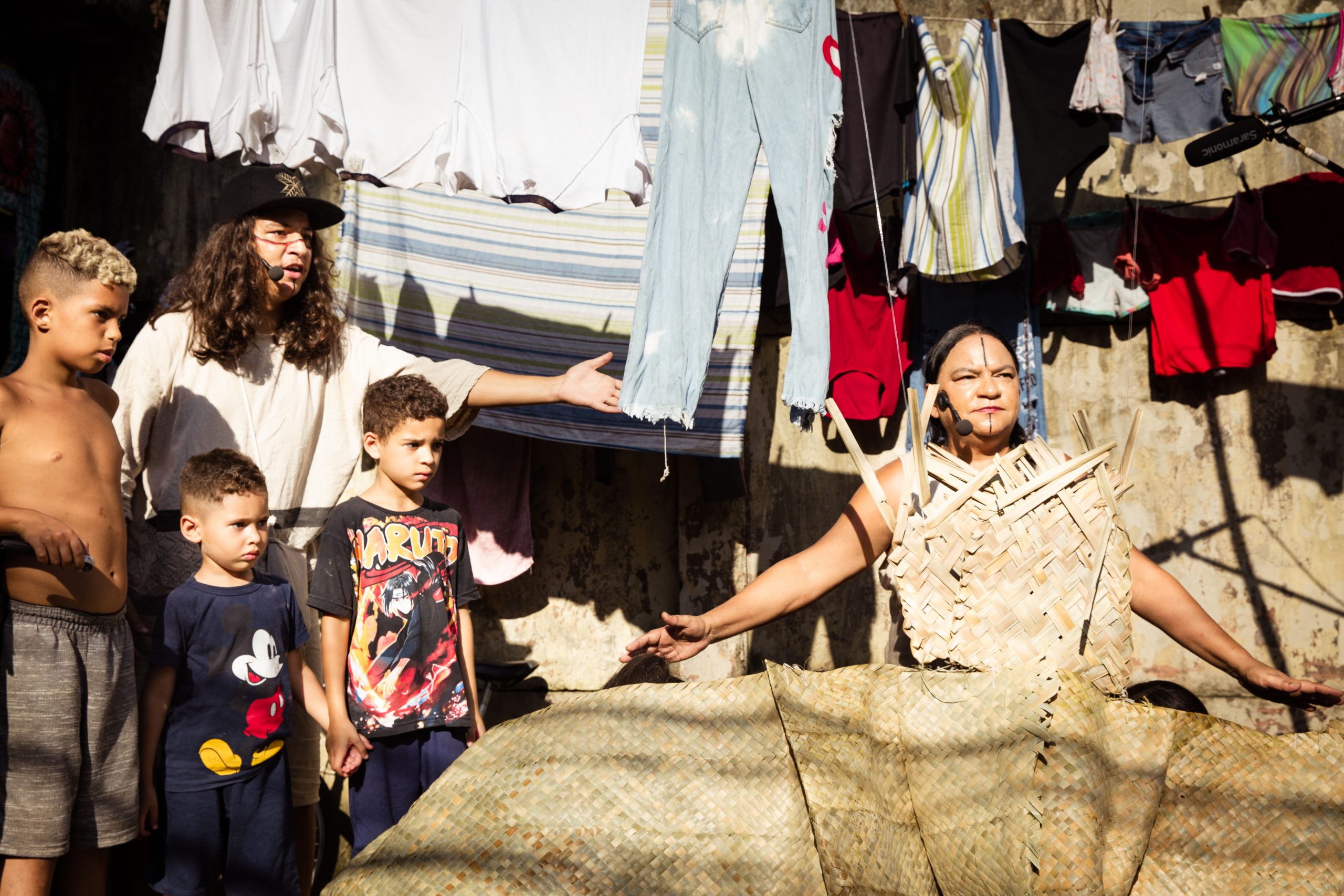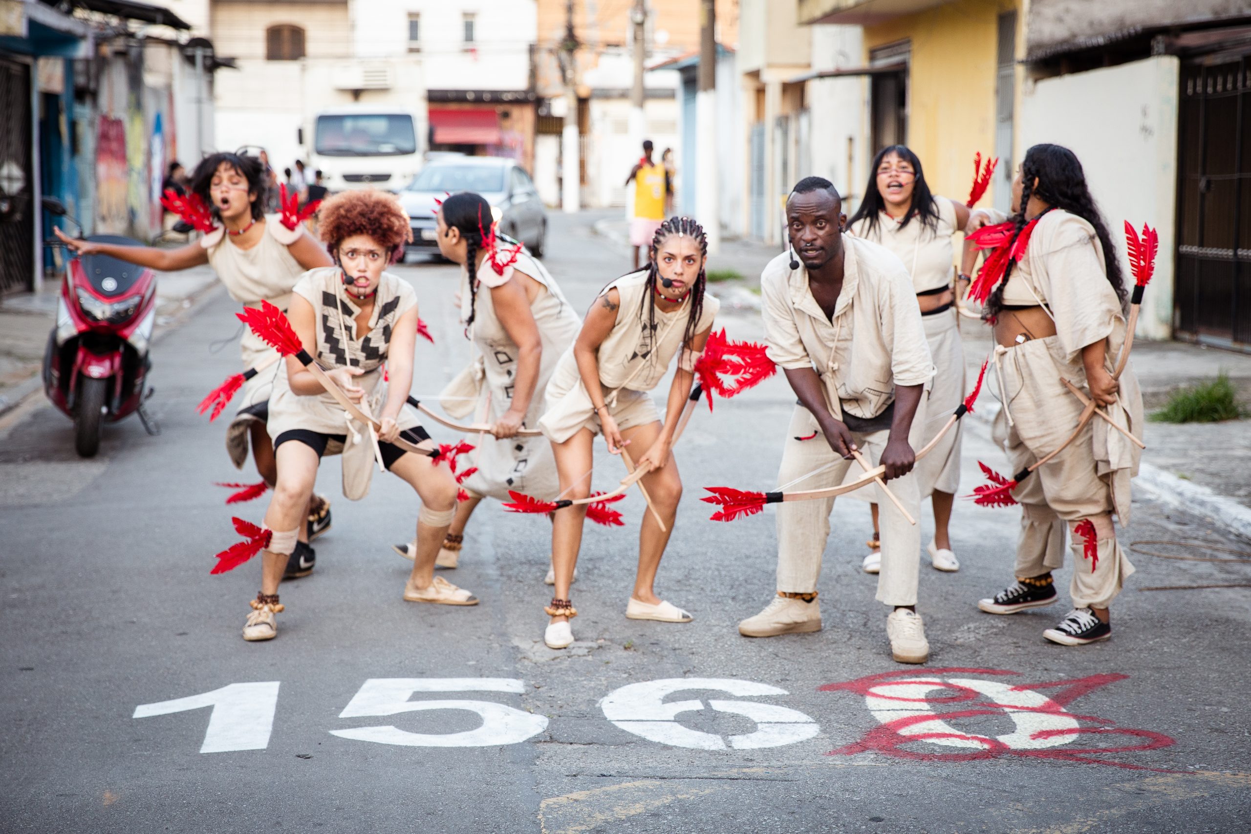 Resumo: No espetáculo, o público embarca em um trem no Brás rumo a São Miguel Paulista. Nesse trajeto, descobre que o Brasil sumiu do mapa e quando desembarca é recepcionado por um levante indígena no Jardim Lapena. Aos poucos vai descobrindo que o antigo aldeamento Ururay – nome original da região pantanosa que abrange os bairros do Jardim Romano, Itaim Paulista e São Miguel Paulista, além de outros da Zona Leste e Alto Tietê – ainda resiste e planeja um novo cerco. Moradorus, crianças e artistas vão se revelando a partir de suas ancestralidades: indígenas, vindos de África, de Abya Yala, benzedeiras, pajés e do Nordeste brasileiro