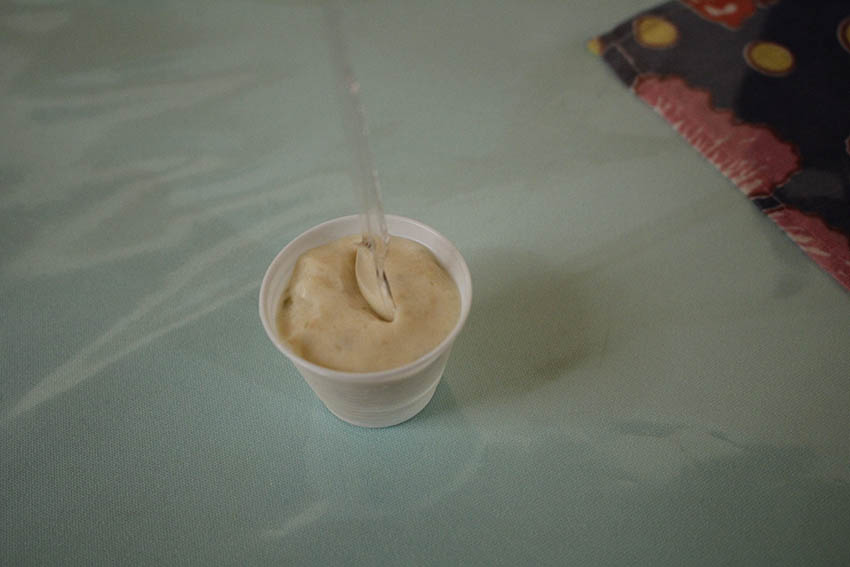 Depois de conhecer Katu, nos dirigimos para o Restaurante da Marlene, no centro de Parelheiros, para degustar sua culinária e trajetória com o Cambuci. O restaurante da Marlene fica bem próximo a Igreja de Santa Cruz, um marco histórico da região – a Igreja foi construída em 1898, a mando de um morador da região, Amaro Pontes, como forma de pagamento da promessa de voltar vivo da Guerra do Paraguai. Durante o almoço, experimentamos o suco de cambuci e também o mousse de cambuci com cupuaçu, “junção de Parelheiros com a Amazônia”, como disse a Marlene.