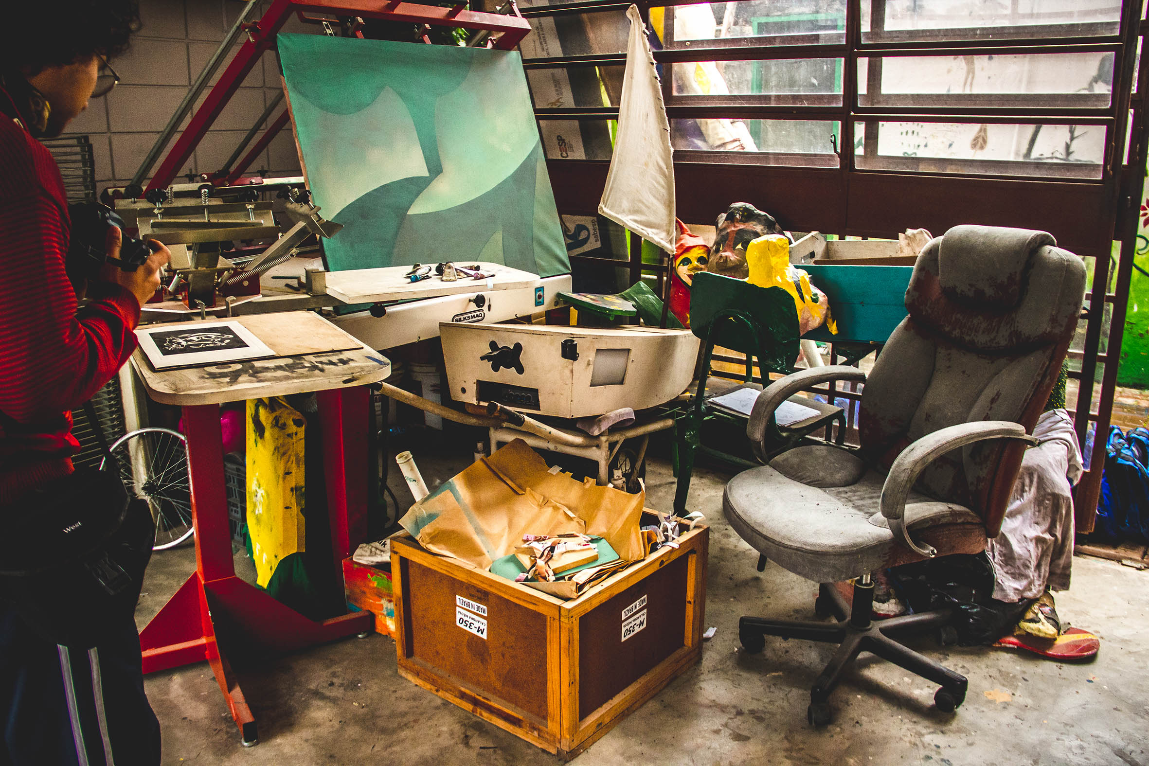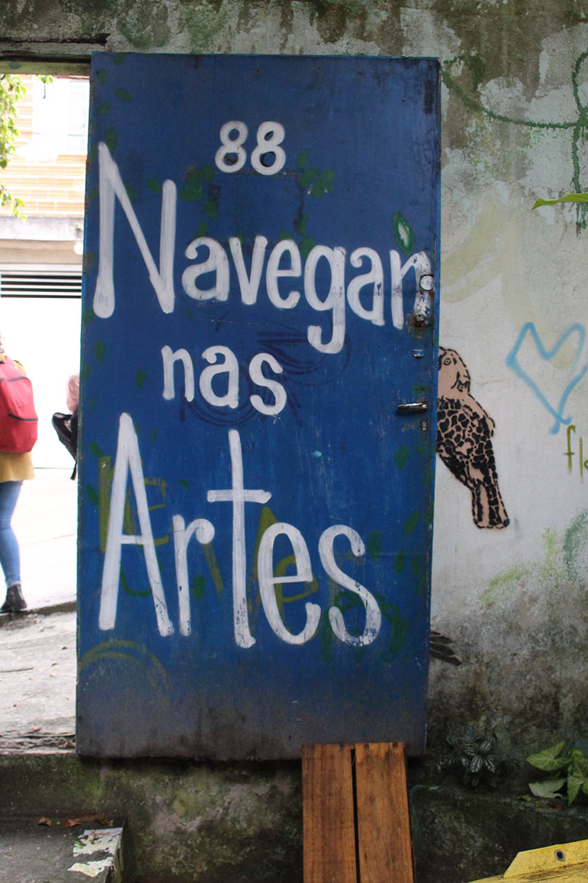 Fomos recebidos no Ateliê da Margem pelo Franz Thomas na antiga sede da ONG Vento em Popa, onde ocorrem as atividades do Navegando nas Artes. O Thomaz é morador do Jd. Gaivotas, um “fruto” do projeto que ali funcionava anteriormente e um dos atuais responsáveis pelo espaço. Com essa trajetória, ele entende muito bem a necessidade de realizar ações e articular os moradores para o reconhecimento e apropriação do local.