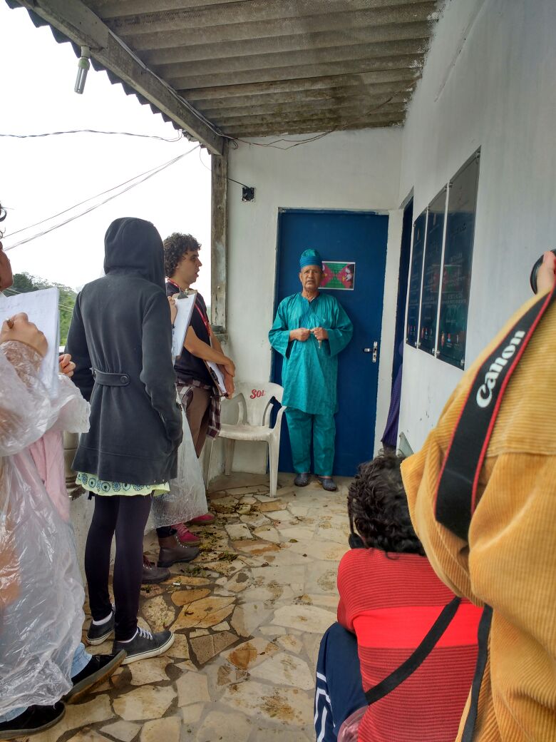 Ele nos apresentou os diversos espaços que havia ali, explicando a disposição de cada organização, tirando dúvidas quando expostas e os usos e sentidos de cada ambiente da roça, desde os espaços reservados às atividades sócio assistenciais até o templo, desmistificando muitos aspectos que estigmatizam as religiões de matriz afro-brasileira, em especial o Candomblé.