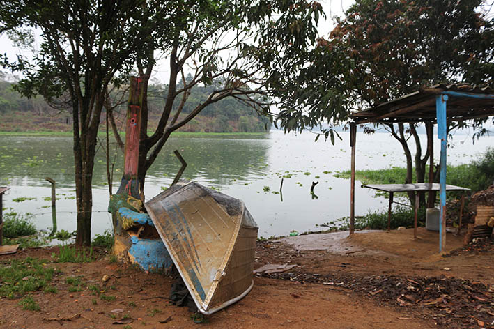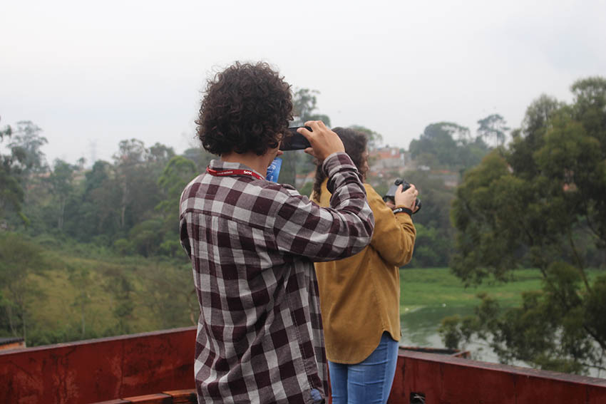 A represa é um lugar muitas vezes desvalorizado pelos moradores de suas margens, não é visto como um local de lazer ou mobilidade pela maioria. No máximo as crianças sempre sabem aproveitar para dar um mergulho. Existem também alguns pescadores que ainda pescam nas suas águas. Ainda assim, observamos que há expressões de afeto entre os moradores e a represa e pensamos que, possivelmente, esse afeto tenha sido semeado através dos diferentes projetos que atuaram ali abarcando o campo das artes, meio ambiente, cultura, juventudes… E como no grupo haviam moradoras e moradores de outras margens de represa, estes tiveram a impressão de aquele pedaço da represa parecia mais limpo e cuidado do que outros. Longe de se explicar pela corriqueira ideia de que “a grama do vizinho é mais verde” pensamos que talvez esse maior cuidado seja justamente resultado dessas intervenções da antiga ONG, desse afeto e da relação que ali se desenvolve com as margens.