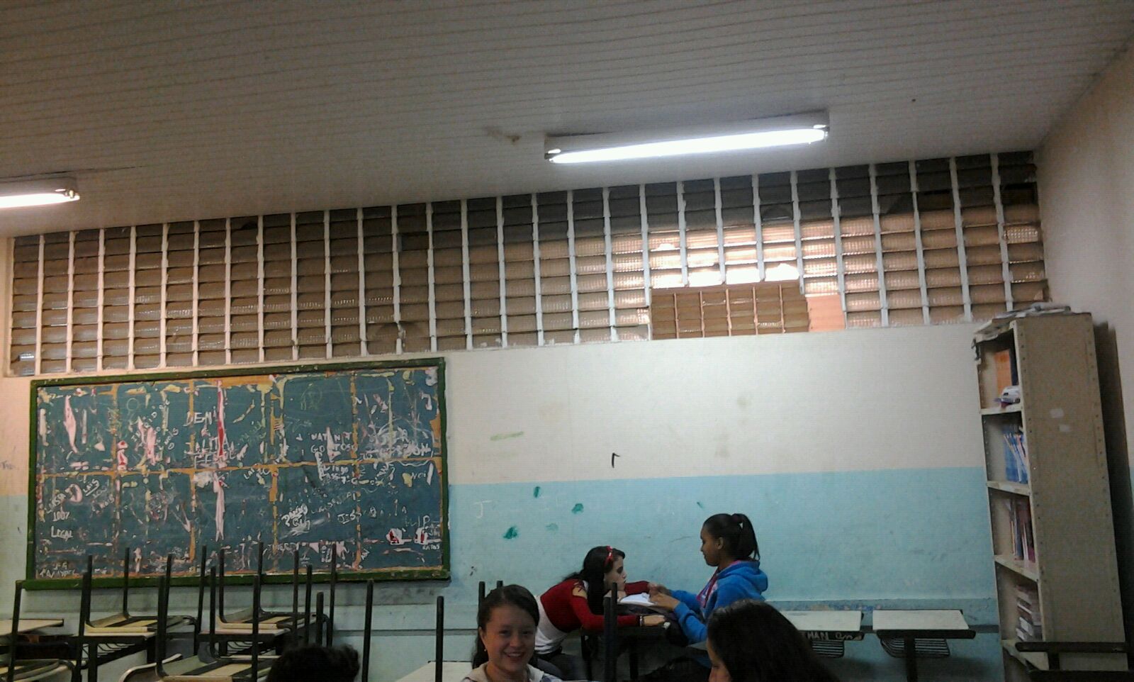 “Todo trabalho que é feito lá é mal feito. Os ventiladores foram ‘consertados’, mas as fiações continuam precárias, qualquer curto ali a escola já era. Não temos laboratório, as paredes dão agonia de ver de tão sujas, as salas da tarde são superlotadas…”, continua ela, além de que só três funcionários estão contratados para limpar a escola toda. Ao reclamarem, a única resposta que os estudantes recebem é que a direção manda ofícios com frequência, mas não tem deferimento.
