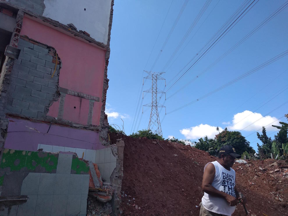 Apesar do bar vir abaixo, Selma e Francisco ainda têm parte da casa de pé. A cozinha foi parcialmente demolida, mas eles não ficaram sem um teto. Mas cerca de 60 famílias não tiveram a mesma sorte. Há mais de uma semana (no dia 12 de fevereiro), elas foram removidas de suas casas que estavam embaixo de torres e linhas de transmissão de energia elétrica que cortam a região – área de alto risco para a segurança das pessoas.