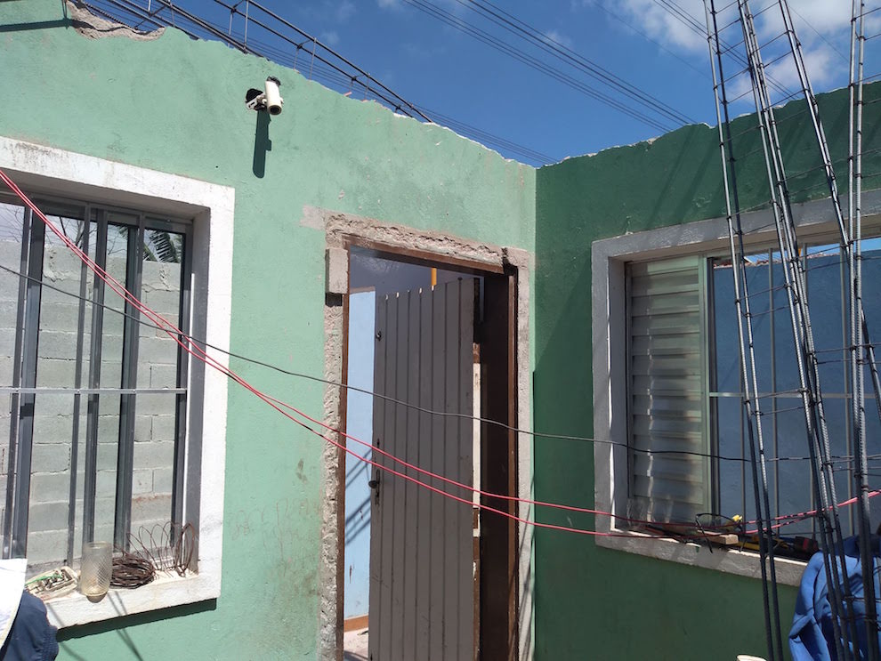 A pintura ainda tava nova, mas as paredes foram ao chão por ficarem na chamada “faixa de servidão” das linhas de energia. “A gente tá ficando no salão do mercadinho que o dono cedeu pra gente por enquanto”, diz ela, que quer bater logo uma laje para fazer os novos cômodos na parte de cima – que está segura.