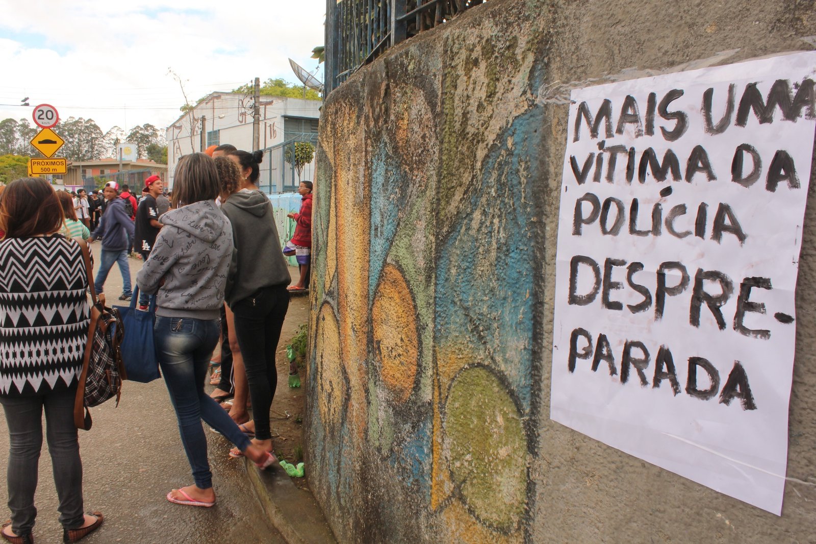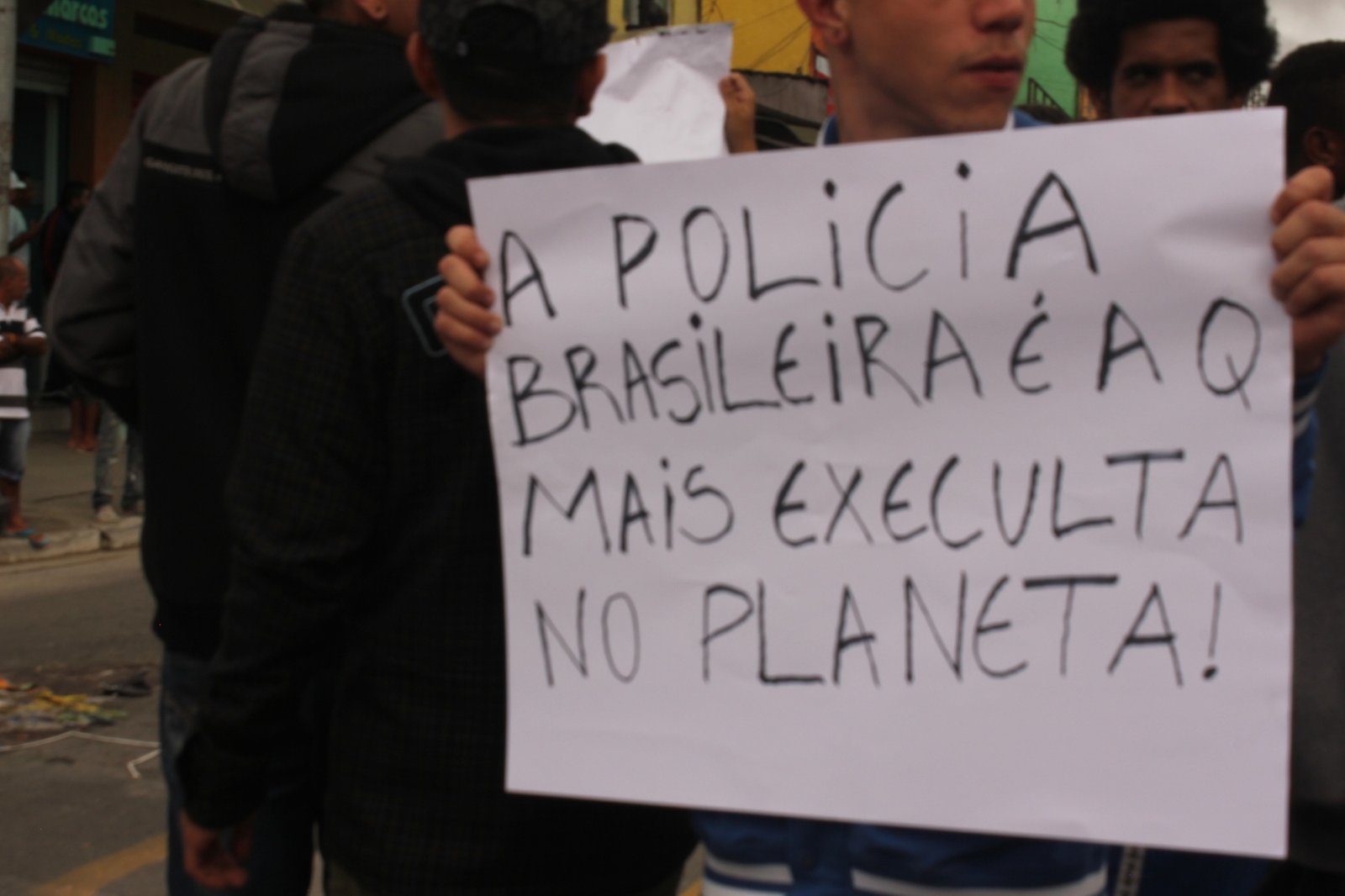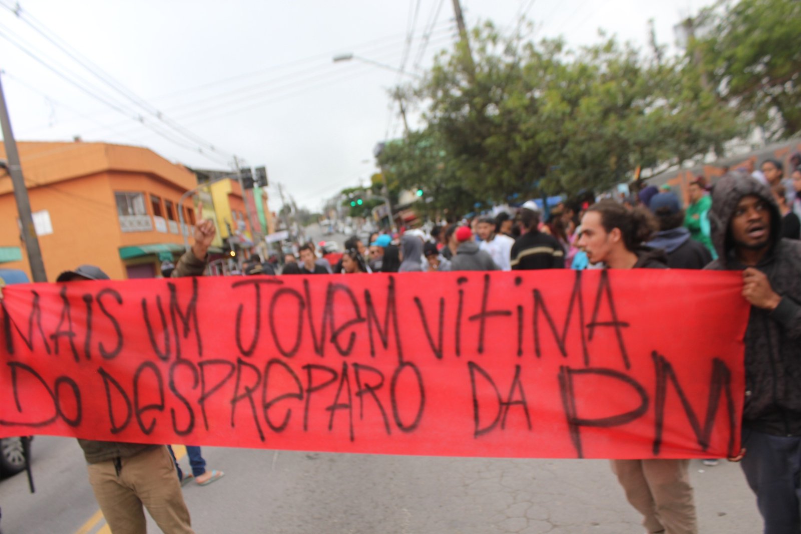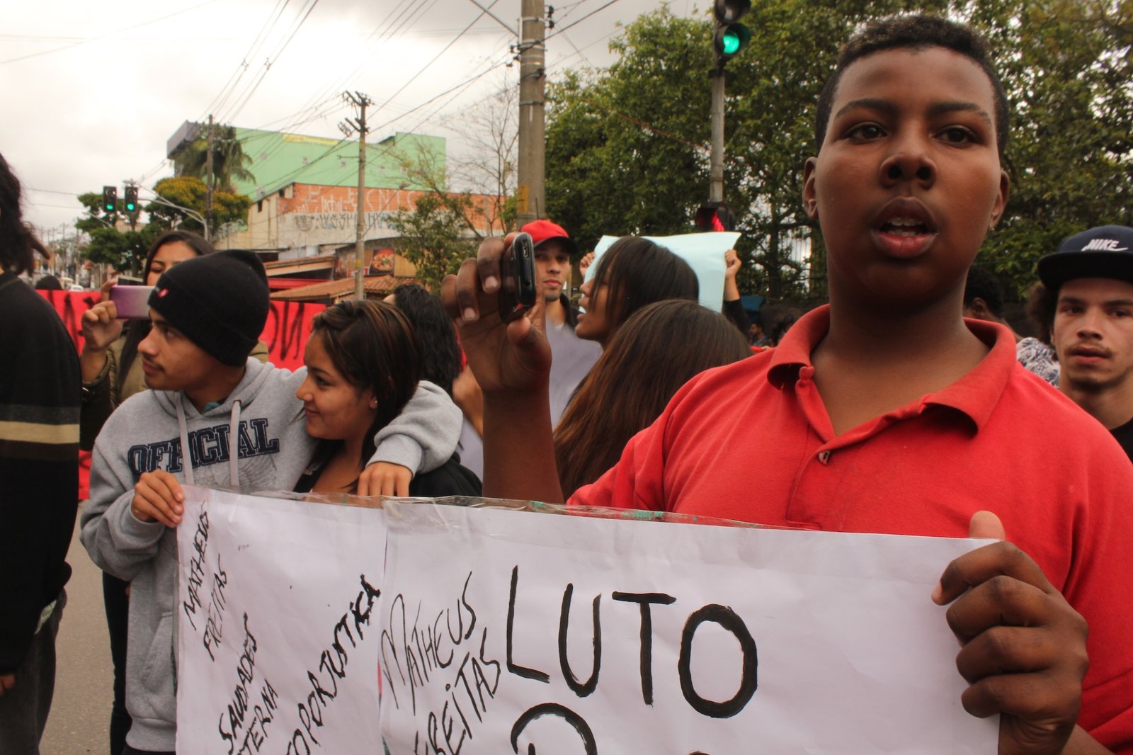 Inconformados com a situação, dezenas de amigos e conhecidos de Matheus se reuniram desde as 14h desta terça-feira (04/10) para protestar contra a ação da Polícia Militar. Com faixas, cartazes e gritos de ordem contra a PM, eles ocuparam parte da pista da avenida Paulo Guilguer Reimberg.