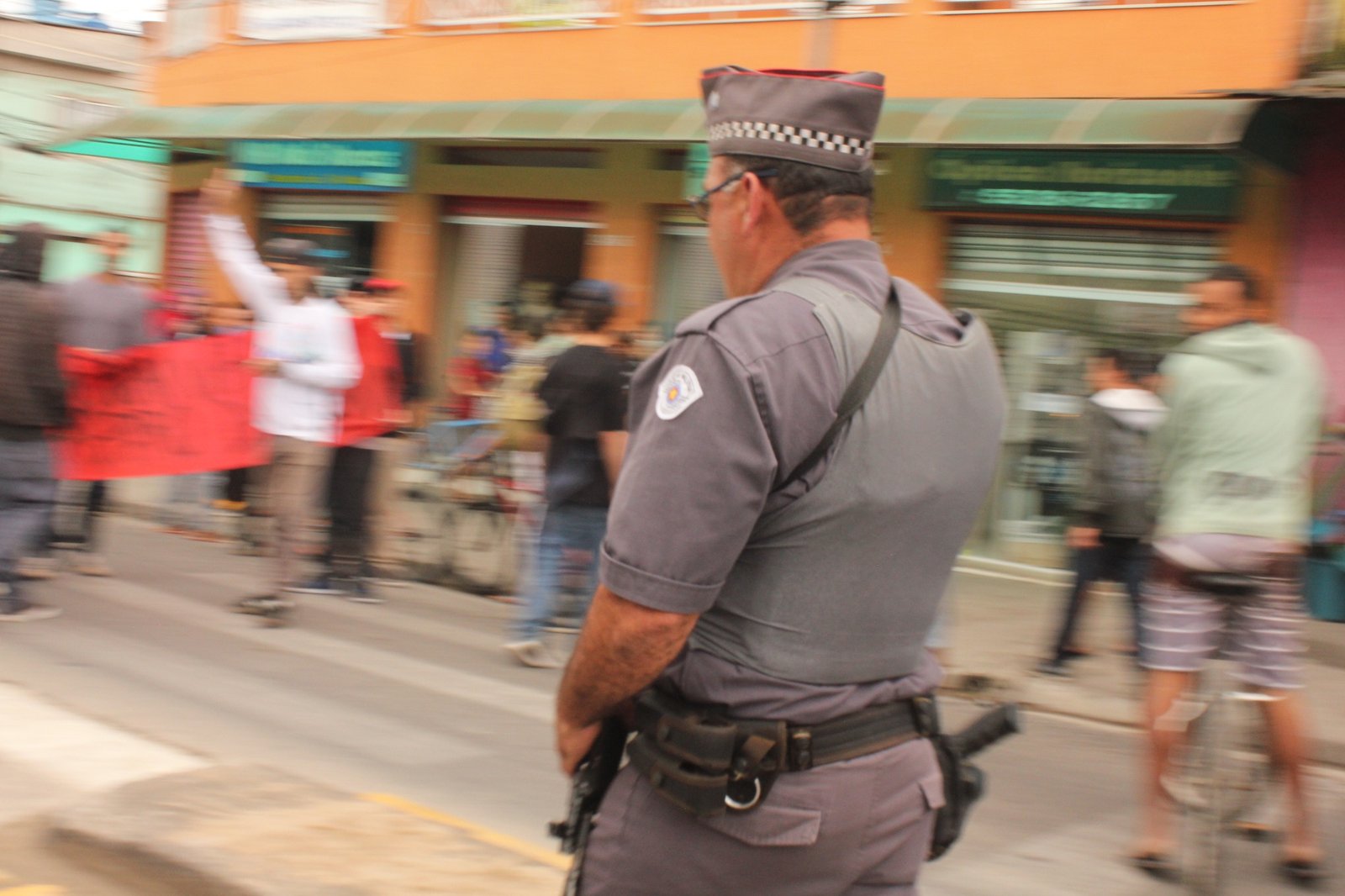 Por volta das 16h30, os manifestantes fecharam completamente a via. Em menos de 10 minutos, a Força Tática da PM lançou bombas de gás tóxico e balas de borracha contra a multidão – incluindo crianças de colo, pessoas idosas e trabalhadores que tentavam chegar em casa.