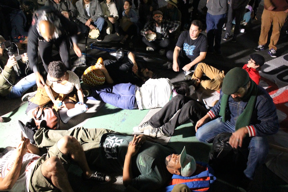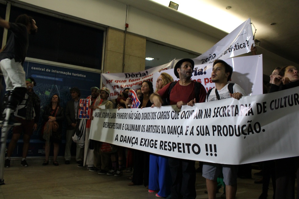 Do lado de fora, outras centenas de pessoas em vigília aguardavam – não só trabalhadores e trabalhadoras da cultura, mas também outros apoiadores como estudantes da Uneafro. Após a saída, todos seguiram em caminhada pela avenida São João até a esquina com a Ipiranga, onde sentaram-se no asfalto e lembraram as lutas do povo negro e dos indígenas, das periferias, de mulheres, gays, lésbicas e transexuais, de vítimas da violência do Estado – mais uma vez, ressaltando o aspecto político-transformador desse movimento.