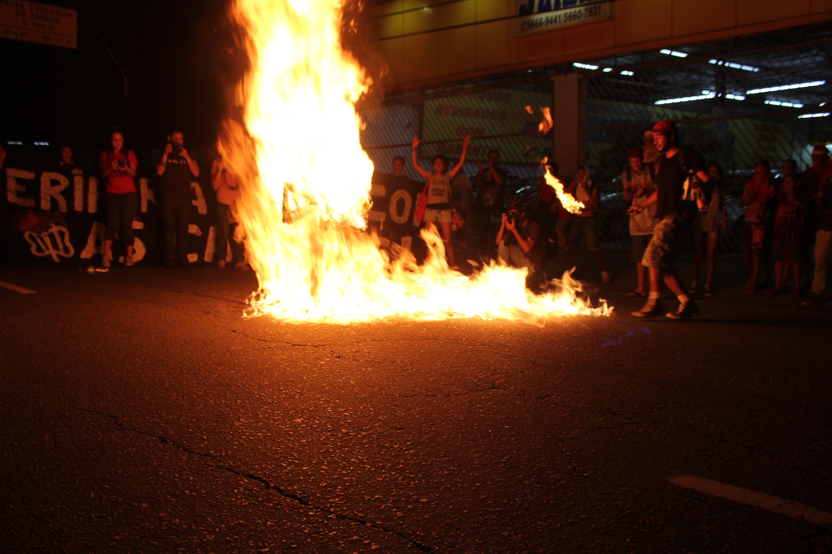 Policiais desceram das viaturas e marcharam em direção ao protesto. Bombas de efeito moral e balas de borracha foram disparadas sobre os manifestantes – inclusive crianças e pessoas idosas.
