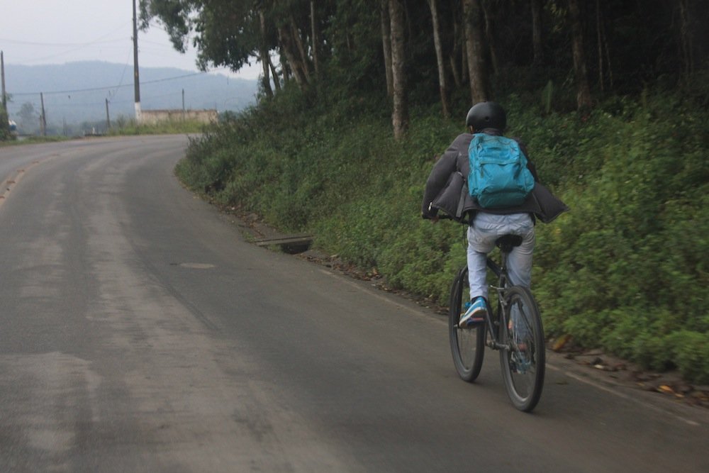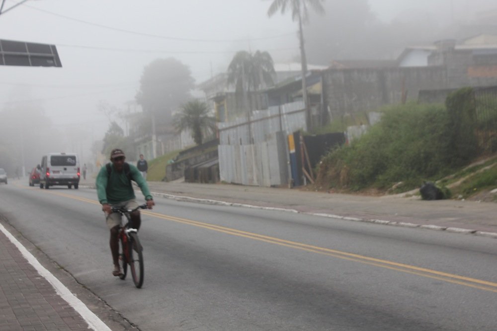São 07h da manhã de uma terça-feira de maio. Os termômetros marcam 11ºC, mas o frio parece mais forte. Uma névoa branca cobre a Estrada do Colônia. Na subida próxima ao CEU Parelheiros, o pedreiro Aparecido Fertonani, de 55 anos, já está sem fôlego e sua bicicleta comprada de segunda mão tem problemas em algumas marchas. O jeito é empurrar.