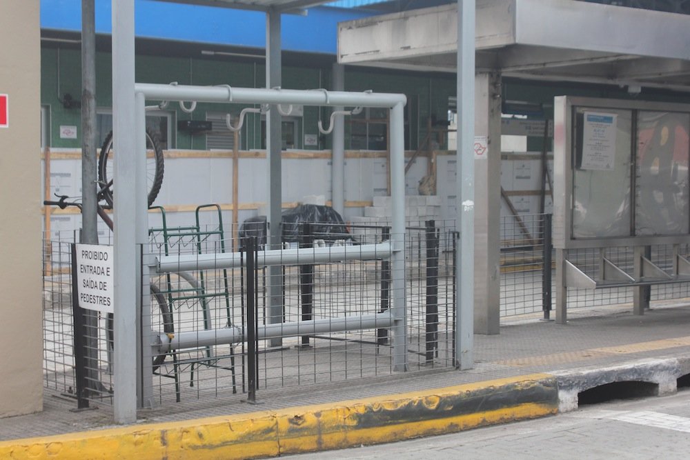 - Bicicletário do Terminal Parelheiros: em obras (Foto: Matheus Oliveira/Periferia em Movimento)