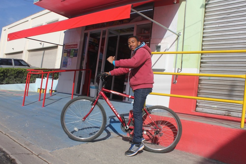 - Renan Victor usa a bike uma vez por semana e economiza R$ 45 por mês (Foto: Matheus Oliveira/Periferia em Movimento)