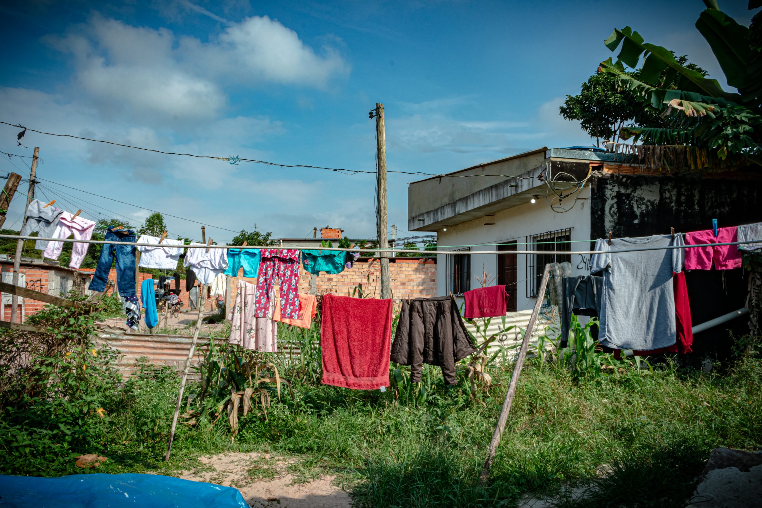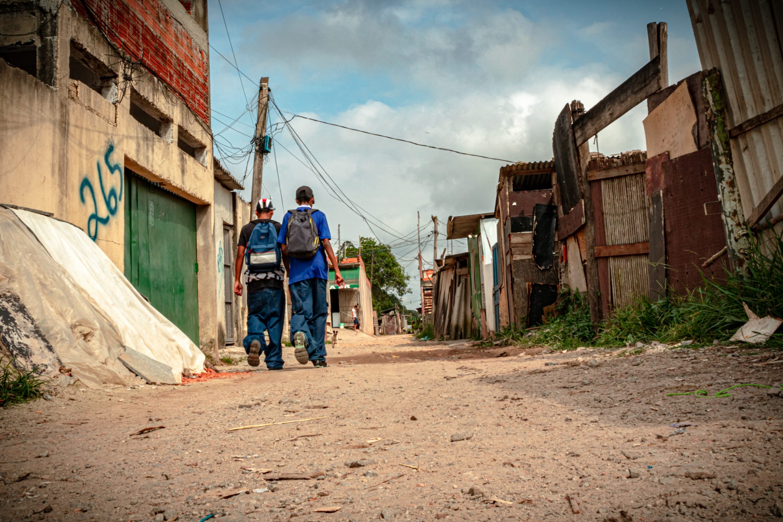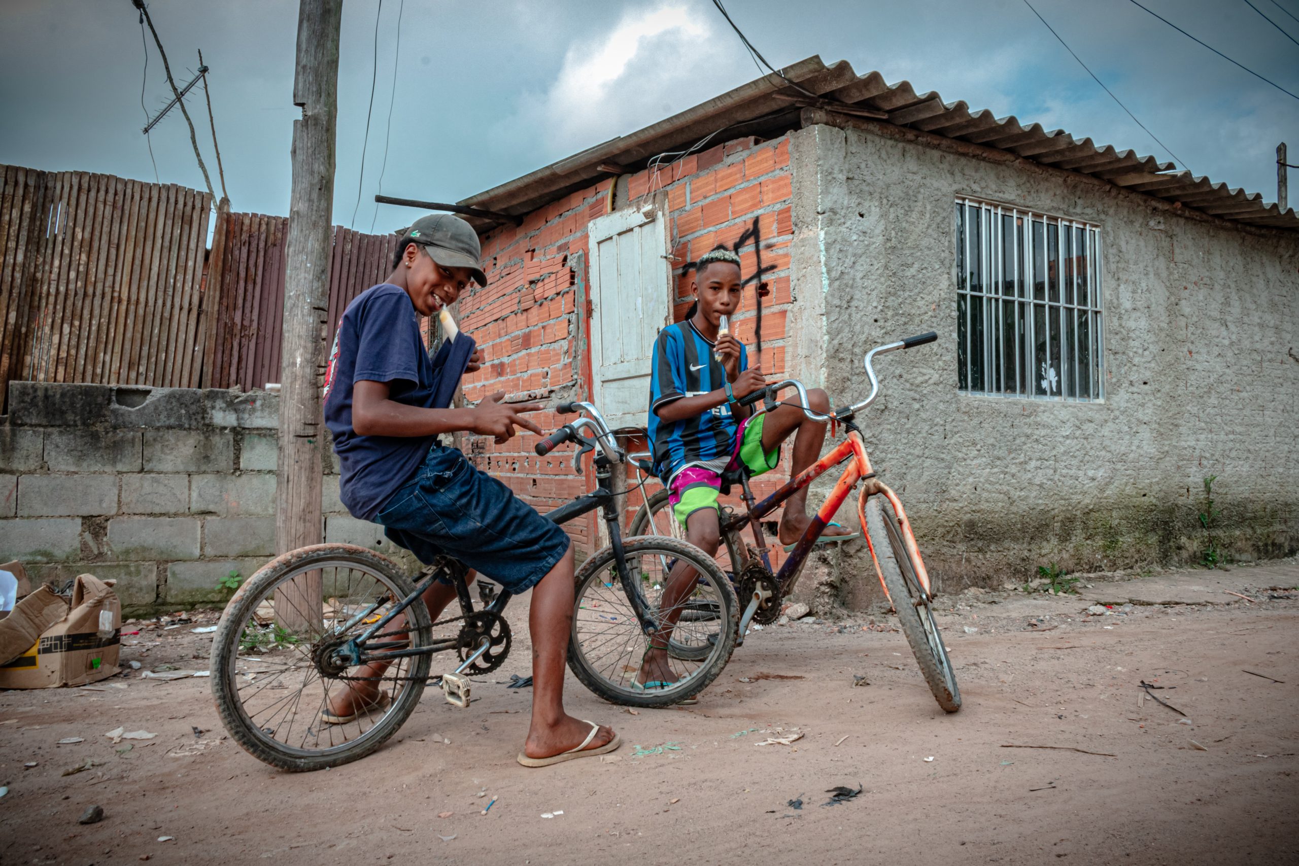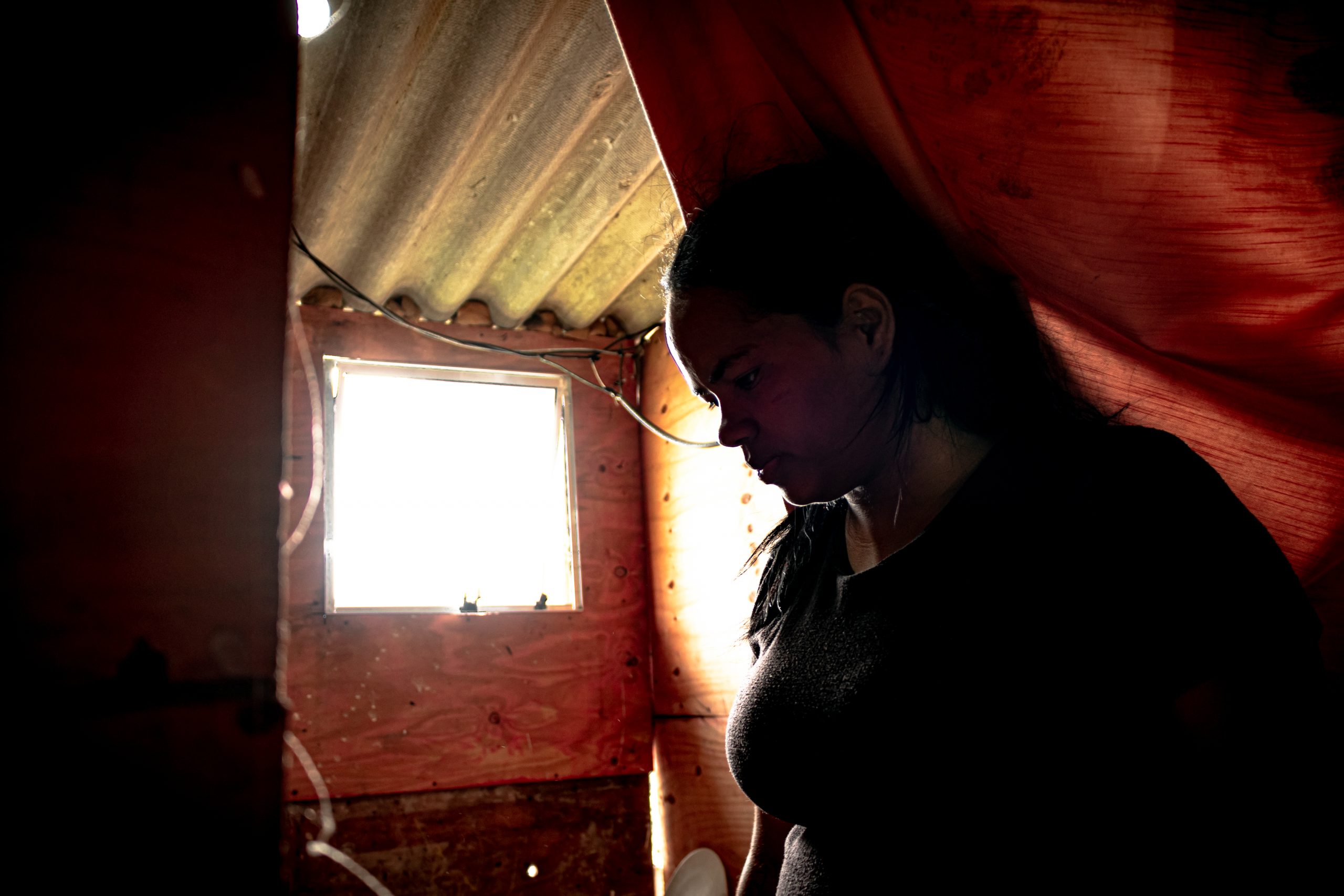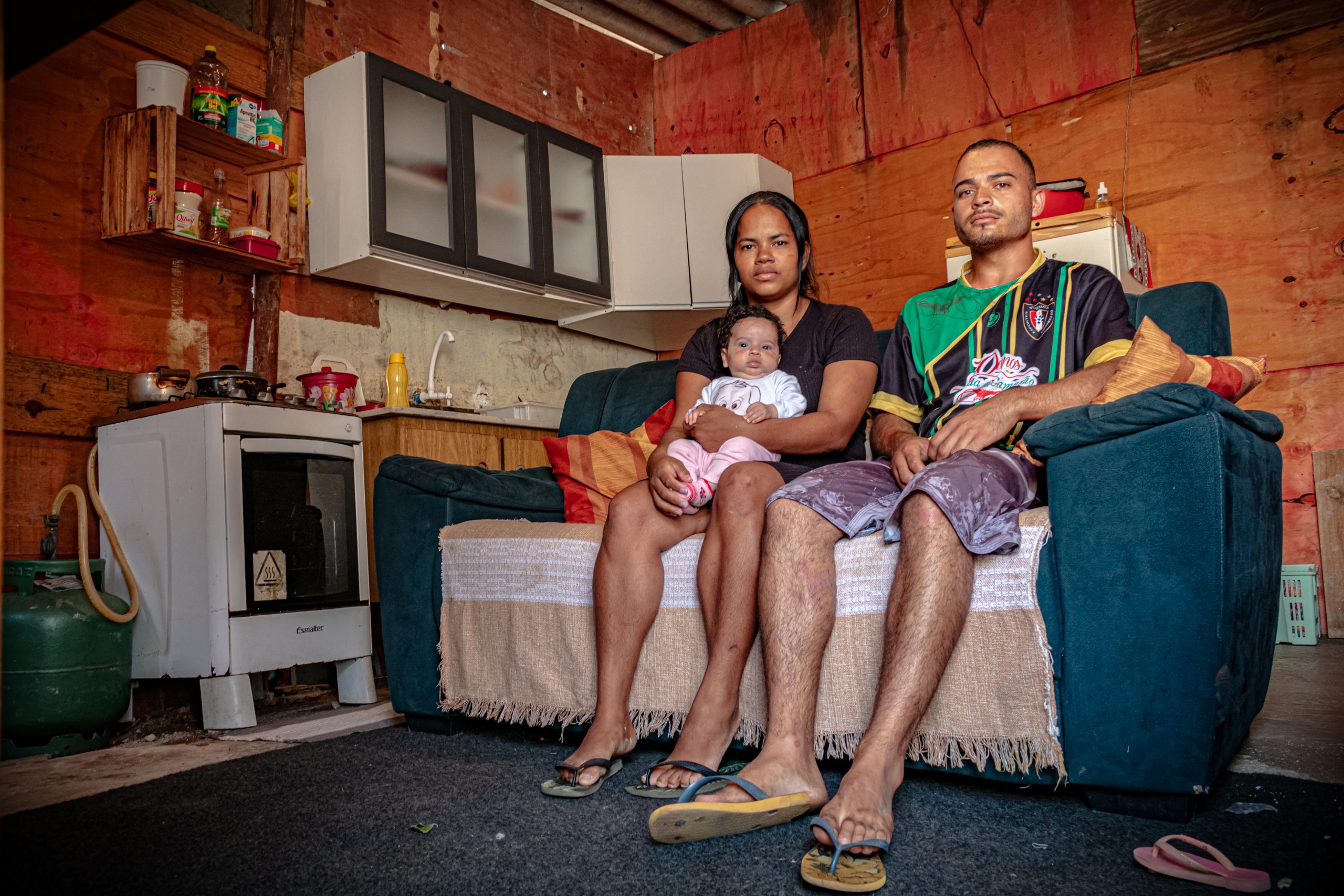 A autônoma é mãe solo de 3 e mora há 13 anos no bairro. Quando chegou, fez um barraquinho de madeirite. Foram 9 anos, até subir as paredes de alvenaria, recém rebocadas.