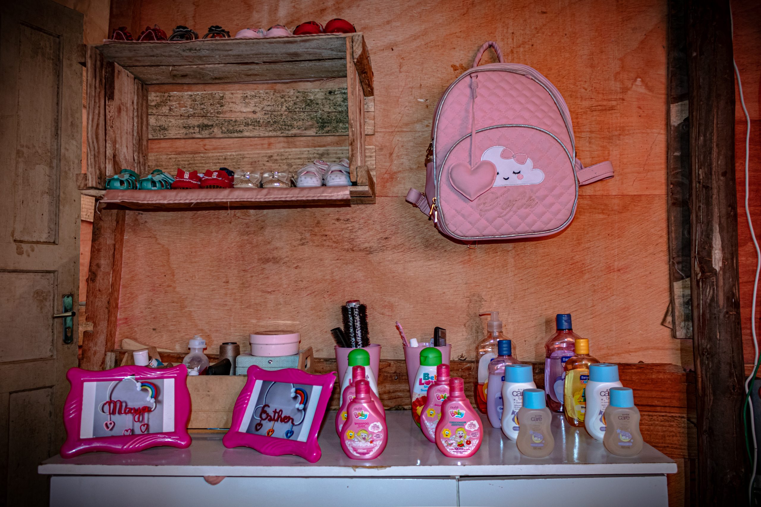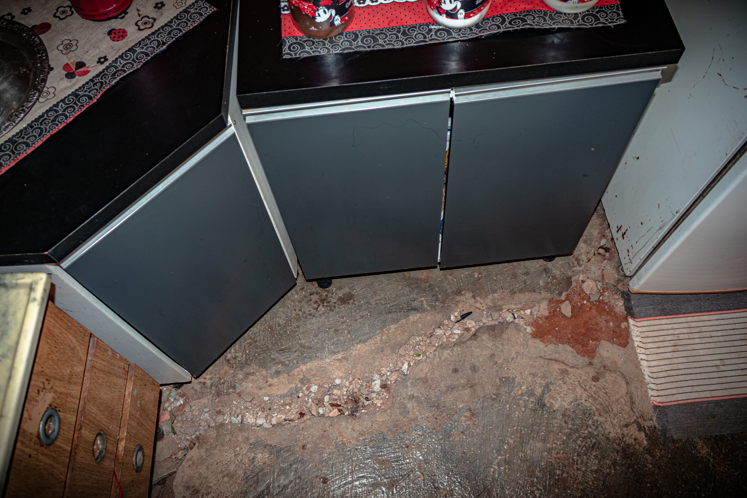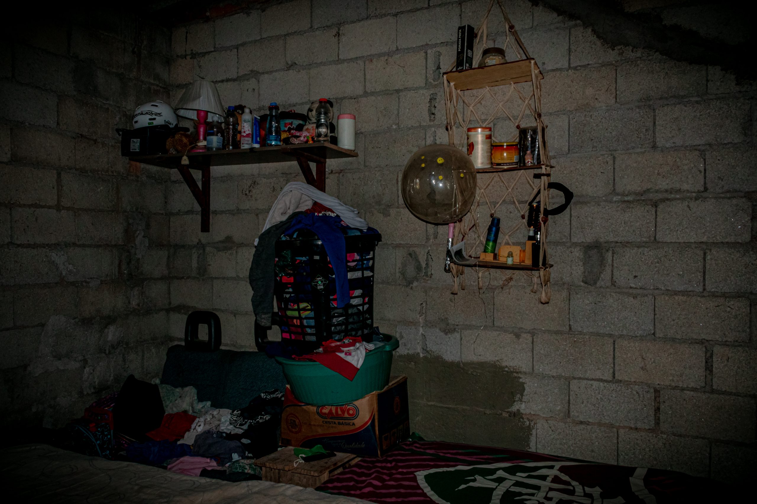 Com as fortes chuvas do verão, a casa dela ficou ameaçada. O chão do quarto está cedendo. Por isso, quando chove, a família dorme na sala.