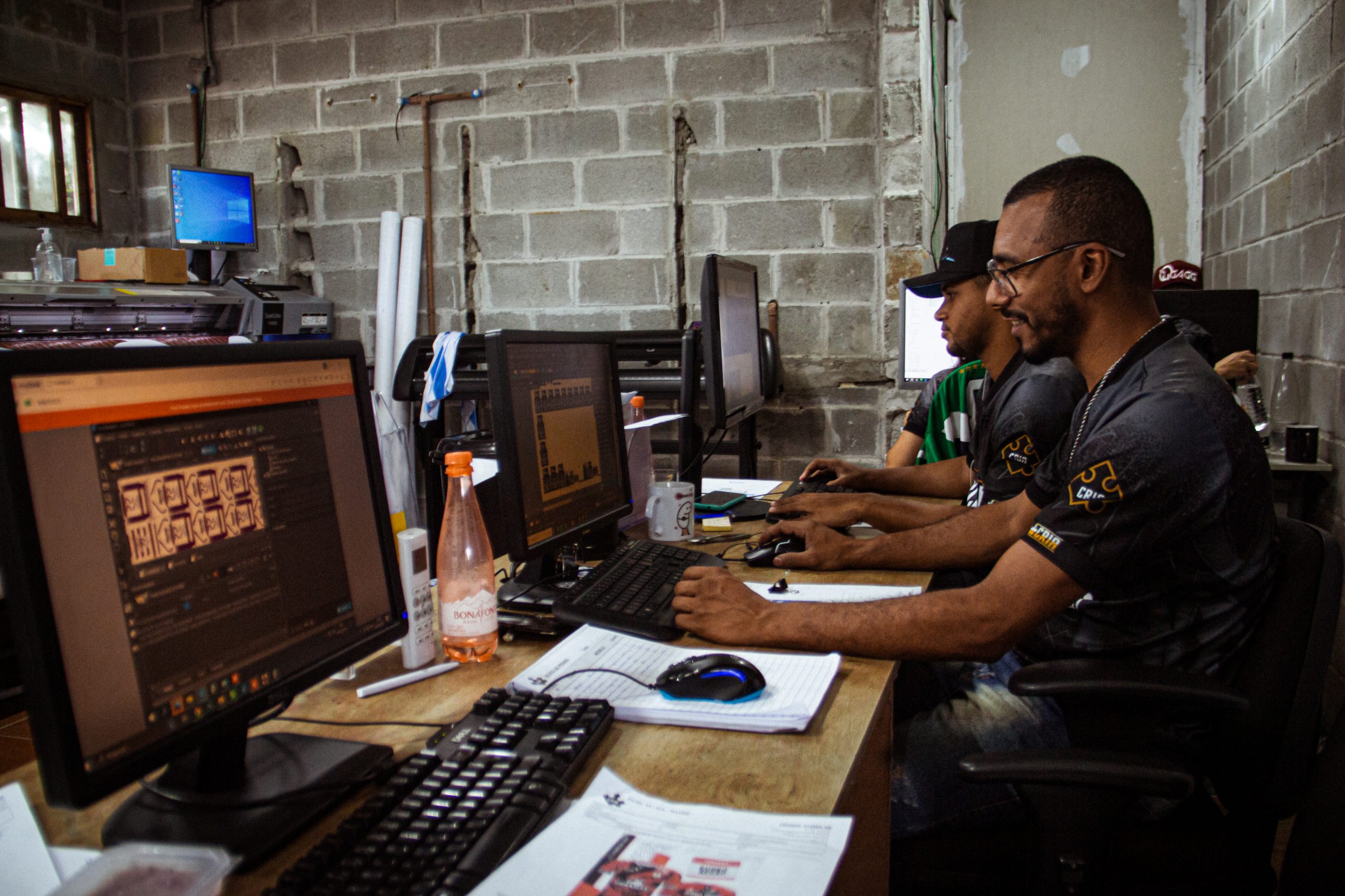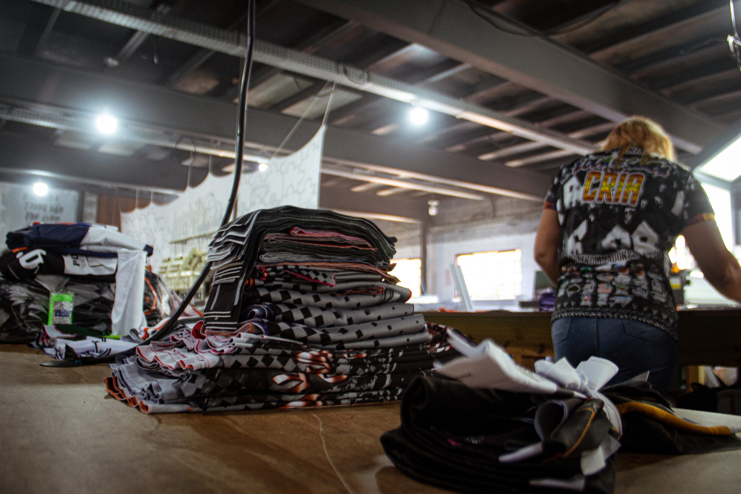 “O cliente já chega falando o que ele quer. Se é um uniforme, uma camiseta, um boné. Essas informações geralmente são acompanhadas do logo do time, no nome, na região, no bairro, no mascote… Então, é esse conjunto, né? Isso já abre a mente dos nossos designers, que têm um conceito próprio do Cria”, detalha Rafael.